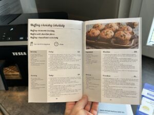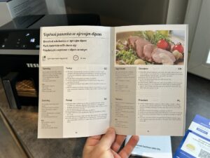 V balení jsme našli barevnou kuchařku s recepty, která je podle nás ideální pro začátečníky i pokročilé, a přehledný uživatelský manuál, který vás rychle provede prvními kroky 📚